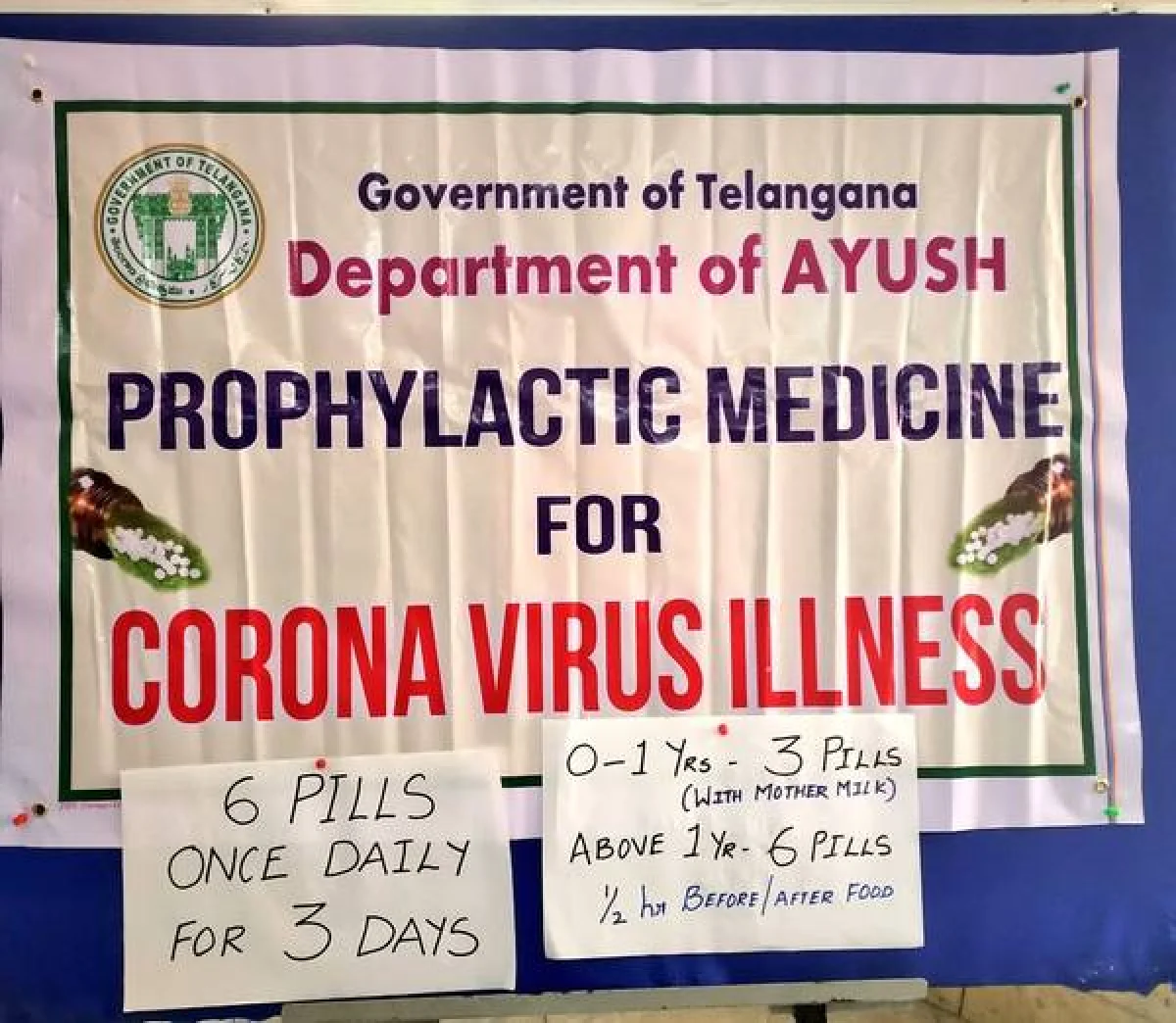 ఆ ప్రకనట సారాంశాం ఏంటంటే... కరోనా వైరెస్ను ఆయుర్వేదం అడ్డుకుంటుందట. ఎలాగంటే, మూడు రోజుల పాటు ప్రతిరోజూ 6 గుండుమాత్రలు వేసుకోవాలి. ఇది పెద్దవాళ్లకు. 0-1, అంటే అప్పుడే పుట్టిన పిల్లలకి తల్లిపాలతో కలిపి 3 మాత్రలివ్వాలి. ఏడాది పైన వున్న పిల్లలకి 6 మాత్రలు వేయాలి. అది కూడా అన్నం తినే అర్థగంట ముందు. ఇదంతా చూసిన జనం, ఇది నిజమేనా అని చర్చించుకుంటున్నారు.